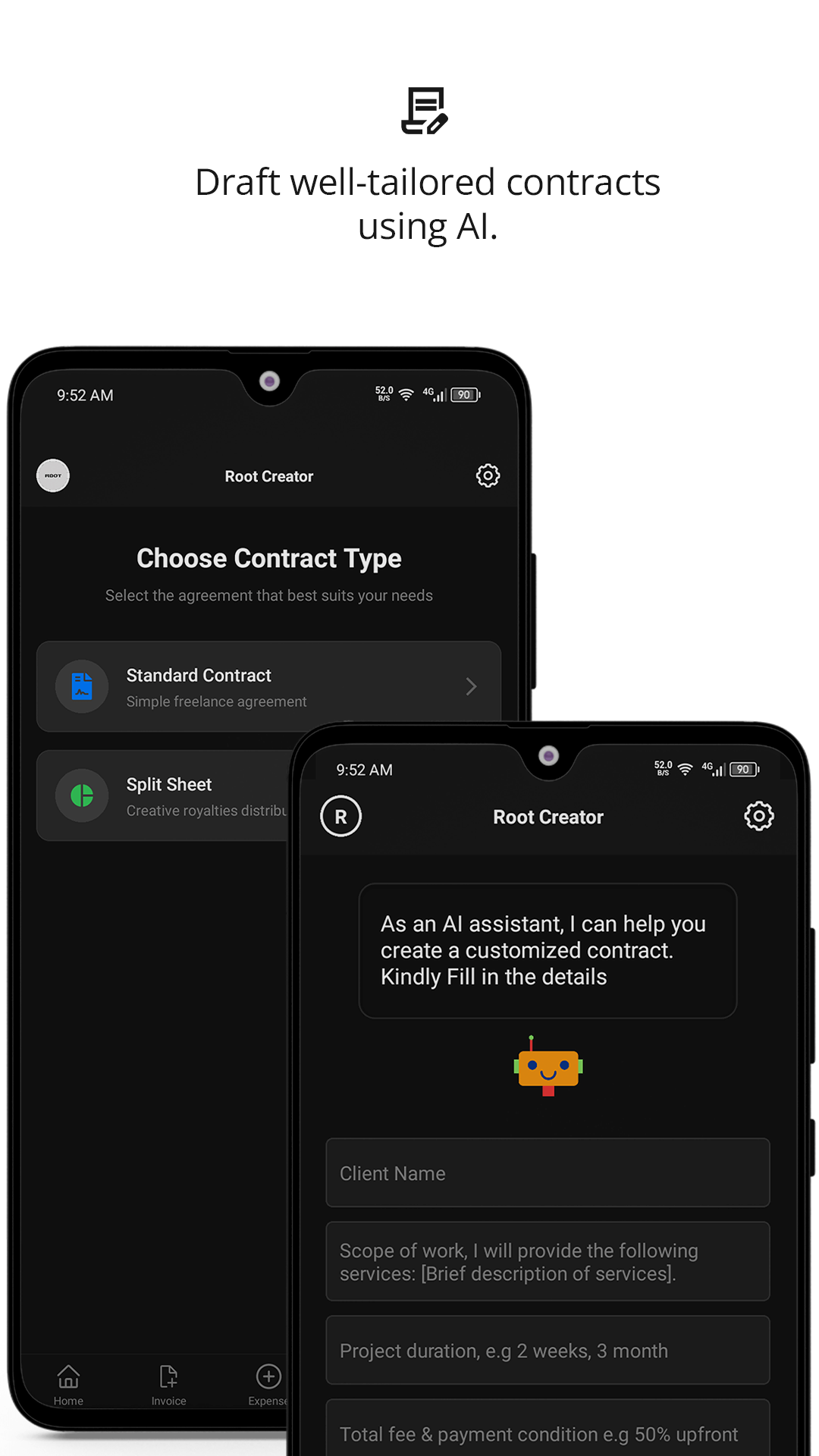 Seal the deal quickly and confidently with Root Creator AI-driven contract generator, tailored for creative professionals